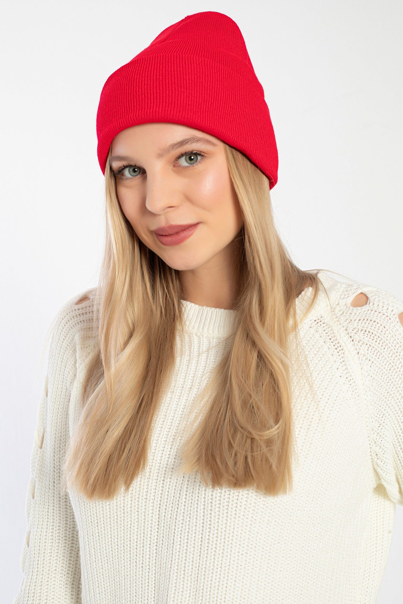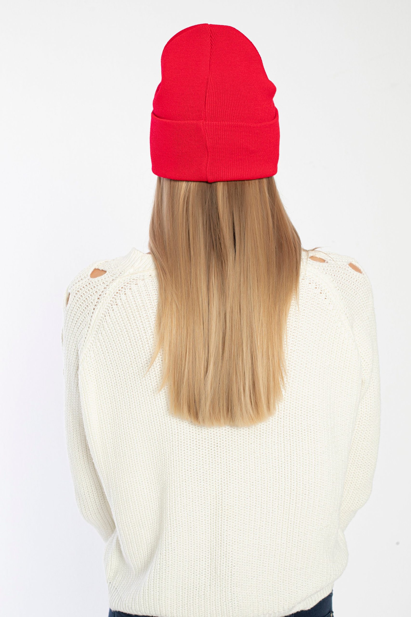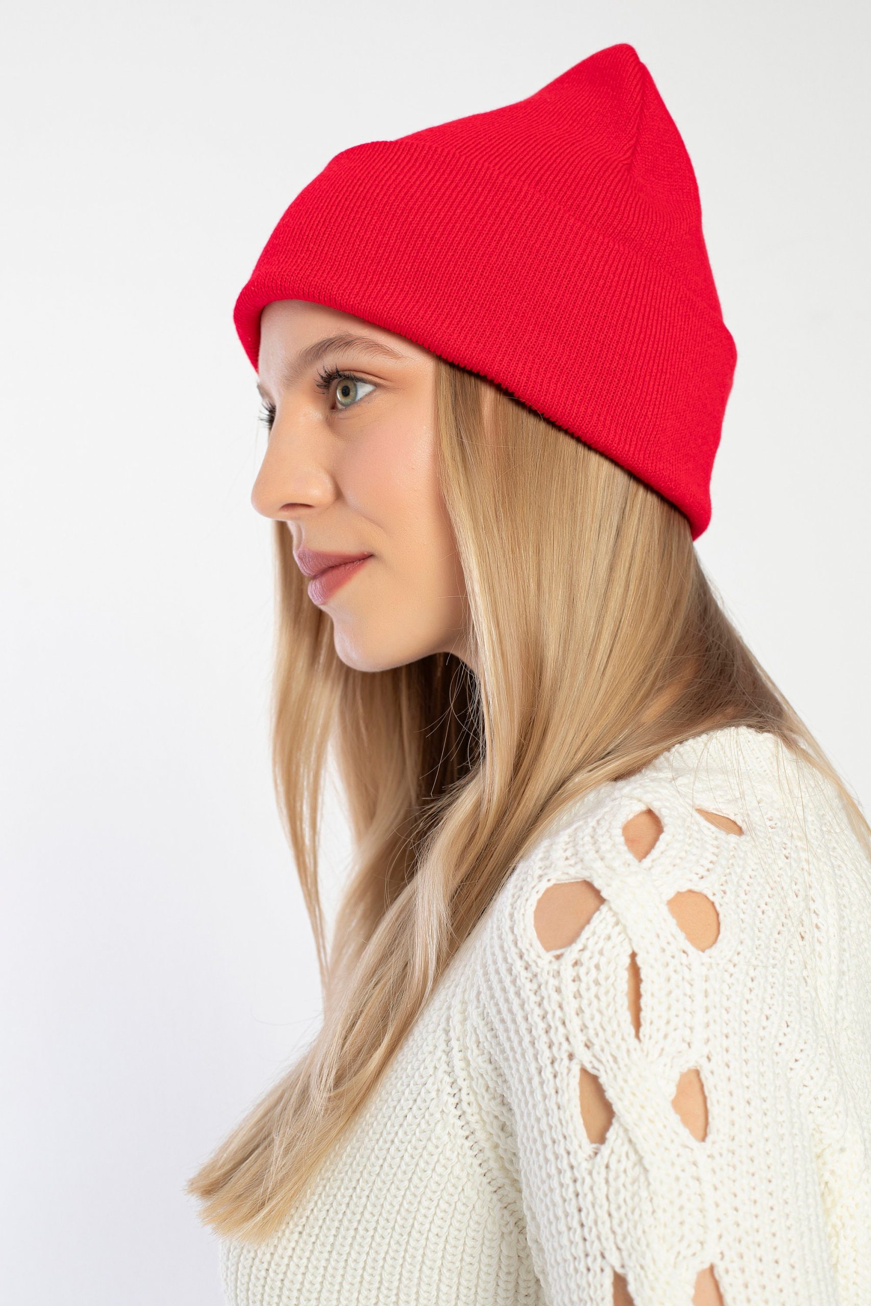 This knitted beanie boasts a simple yet stylish design. The main body is meticulously woven from a rich, luxurious green yarn. The classic ribbed knit creates a crisp, regular texture. The tightly interwoven yarns are incredibly stretchy, conforming to the head’s contours while effectively blocking out cold winds and locking in warmth. The top is adorned with a plump, rounded pompadour in the same color. This fluffy, soft pompadour sways gently with your steps, adding a playful touch to the overall look. Its simplicity is ingenious, making it easily adaptable to a variety of styles, from casual to fashionable.